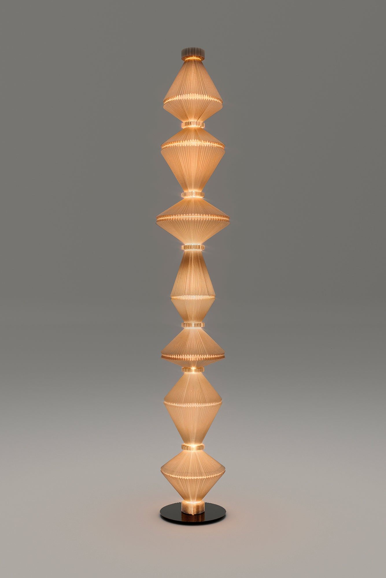 Parachilna's Oïphorique P Still is a floor lamp designed by Atelier Oï, pleated textile, chrome rings. Lands somewhere between lamp and sculpture. Very good.